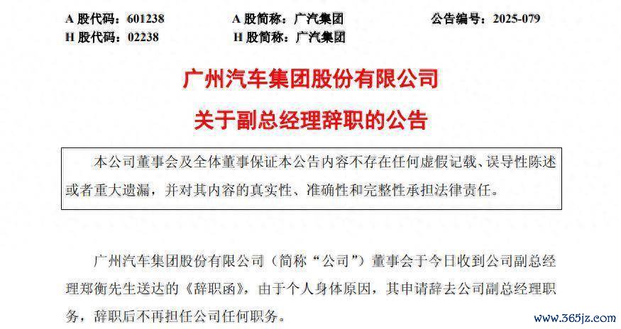 本年9月,广汽集团发布公告,秘书严壮立因“个东说念主原因”辞去所有职务,且下野后不再担任公司任何职务,其原定任期到期日为2025年12月31日。